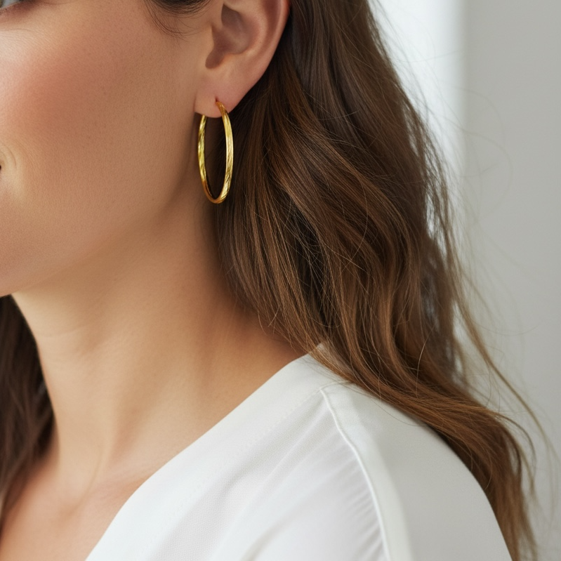 Orecchini in argento 925 a cerchio diamantato plain silver. Diamtro 34 mm