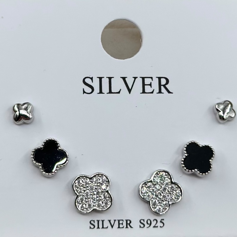 Blister composto da 3 coppie di orecchini impreziositi da zirconi colorati. Chiusura a pernetto