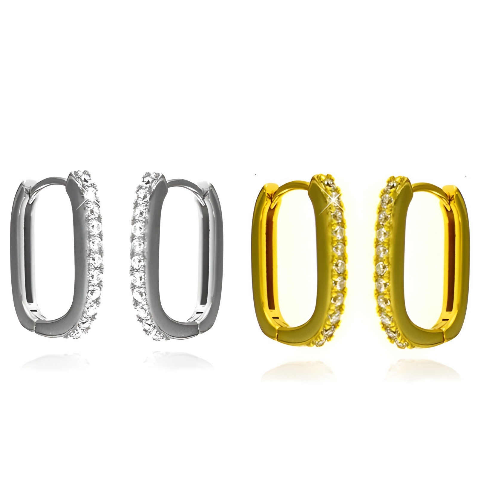 Orecchini da donna in argento 925 a scattino impreziositi da zirconi.
