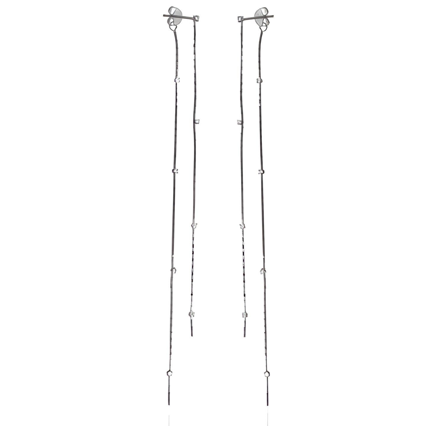 Orecchini da donna in argento 925 con catena lunga e riconi . Chiusura perno. Diametro: 31 mm