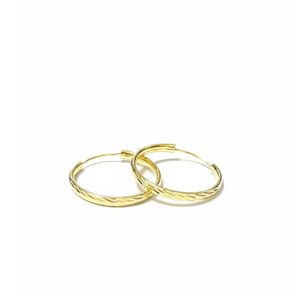 Orecchini in argento 925 a cerchio diamantato plain silver. Diamtro 27 mm