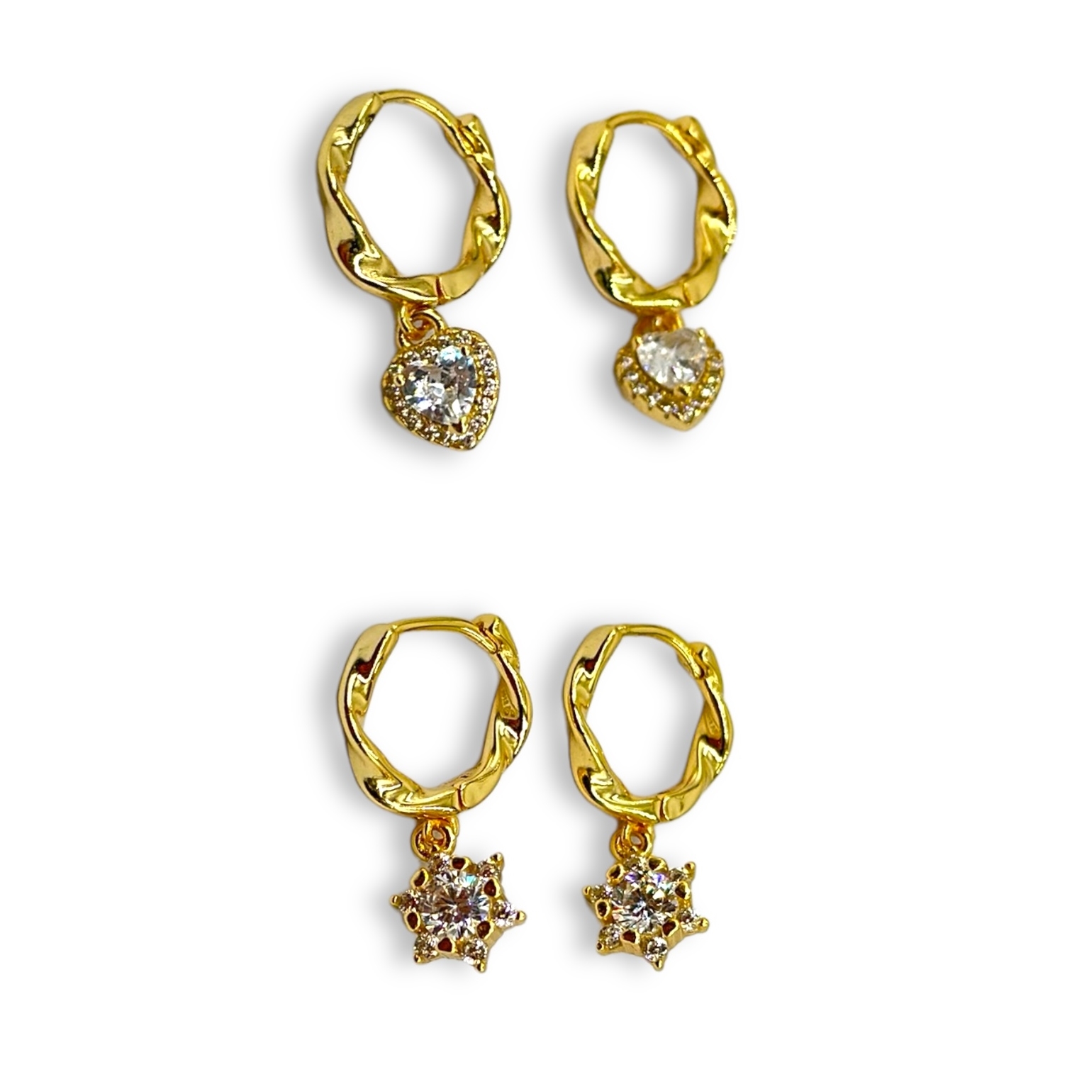 Orecchini cerchietto a spirale (diametro 12 mm) con pendente a forma di cuore stella con zircone . Chiusura a scomparsa.