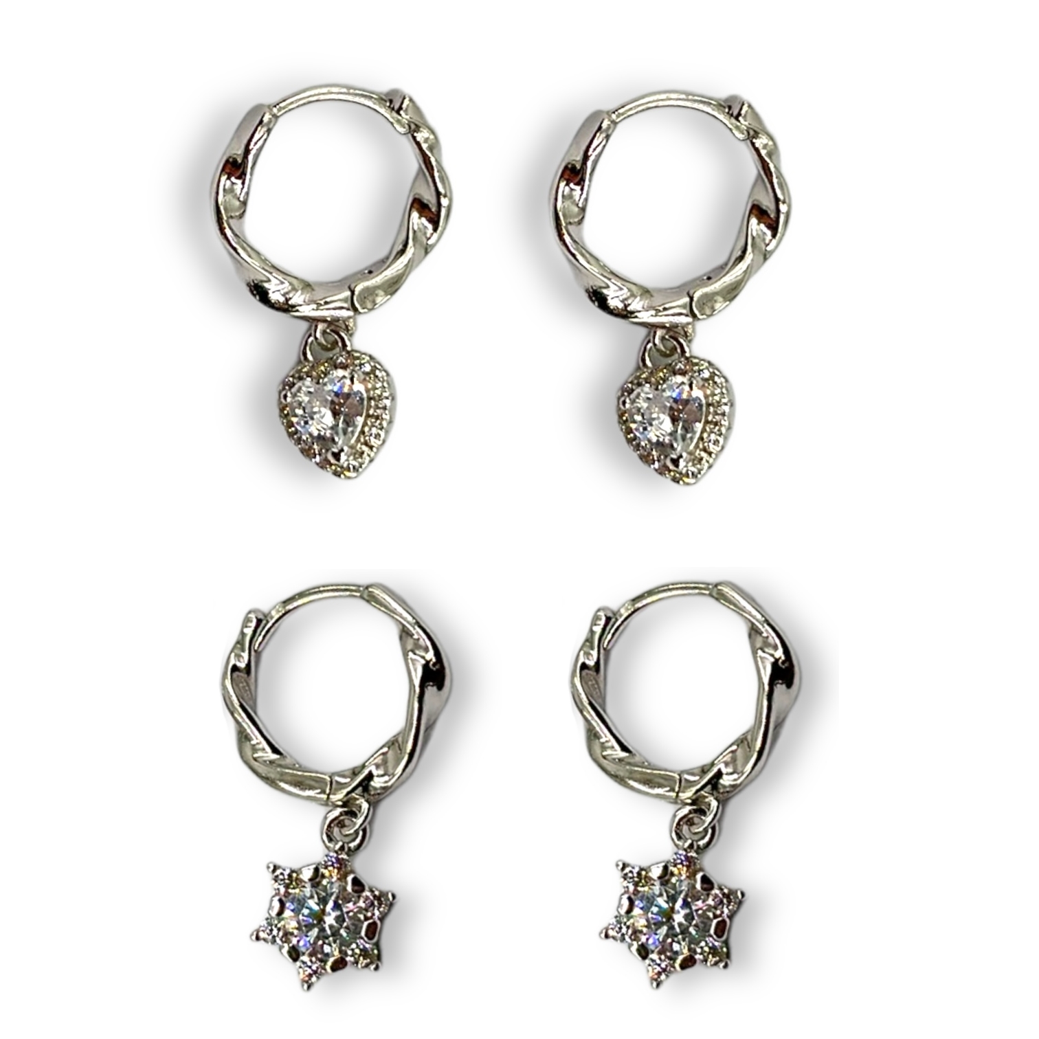 Orecchini da donna in argento 925 con pendente a forma di cuorestella impreziosito da strass
