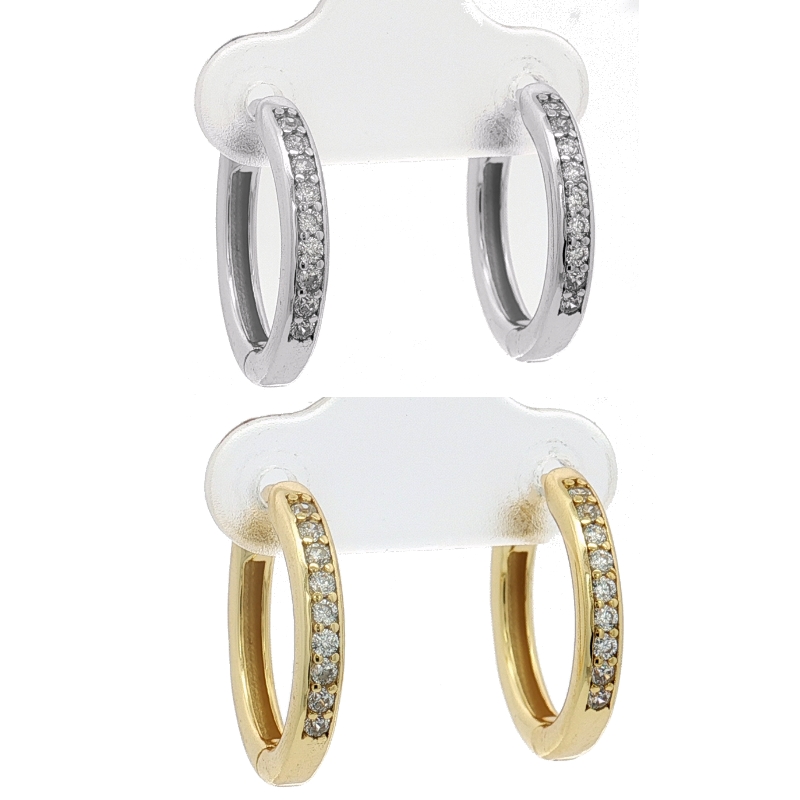 Orecchini da donna in argento 925 a cerchio impreziositi da zirconi. Diametro 18 mm. Chiusura a scattino