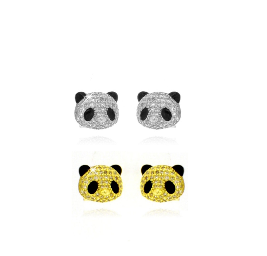Orecchini da donna in argento 925 a forma di panda con zirconi e smalto. Chiusura a pernetto .