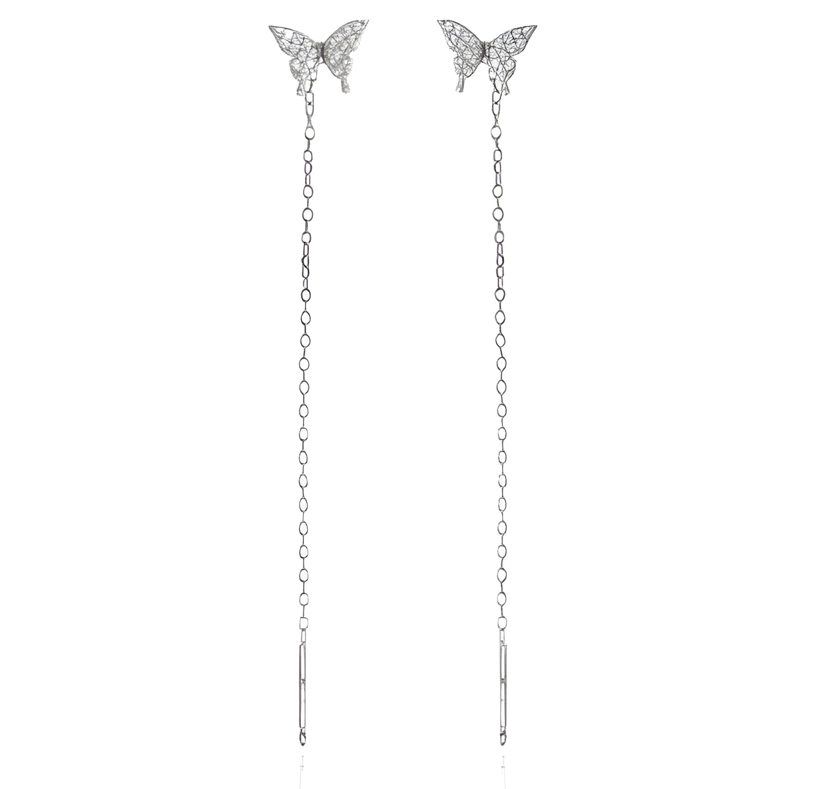 Orecchini da donna in argento 925 Saliscendi con farfalla e zirconi. Chiusura perno.