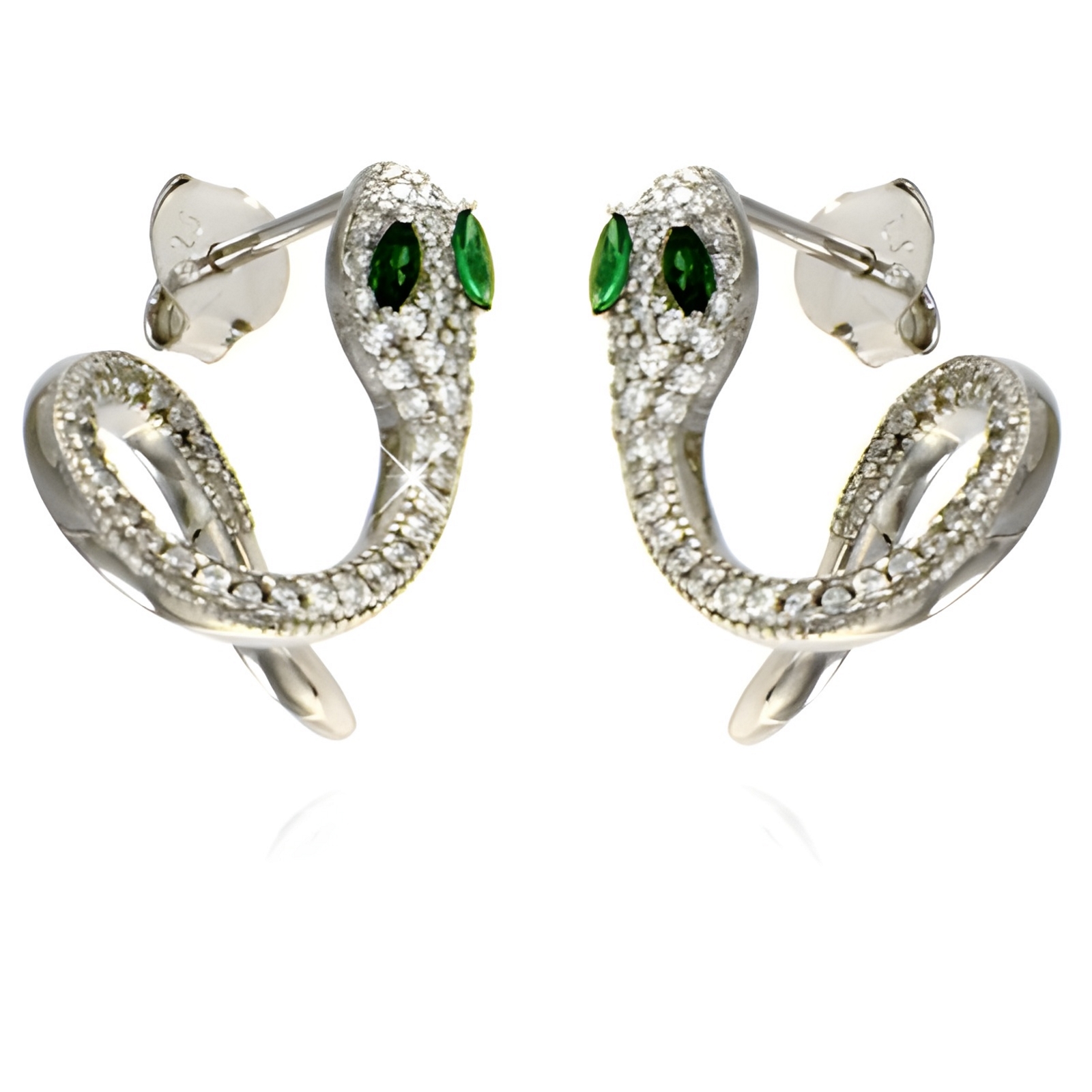 Orecchini da donna in argento 925 a forma di serpente zirconato. Chiusura a perno