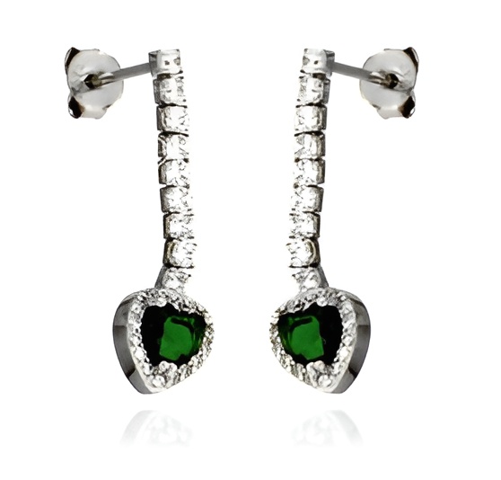 Orecchini da donna in argento 925 modello tennis con cuore pendente zirconato. Chiusura a perno