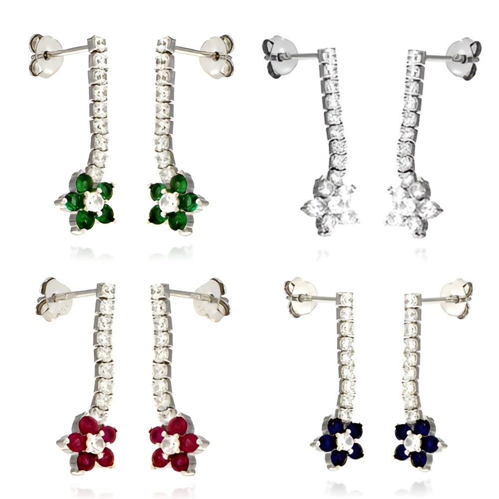 Orecchini da donna in argento 925 con tennis pendente e fiore zirconato. Chisuira a perno