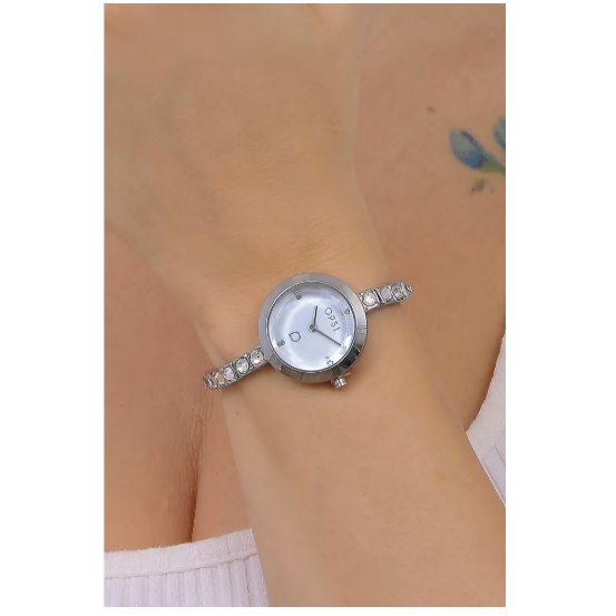 Cinturino in acciaio inossidabile di colore argento con brillanti bianchi